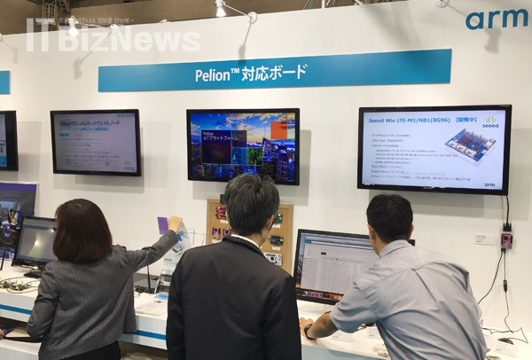 IoT/M2M 전시회 측면 초입에 대규모 부스를 마련한 ARM은 IoT 플랫폼인 펠리언(Pelion)을 부스 전면에 내세웠다. 윈드리버, 화웨이, ST마이크로 등 파트너사도 부스를 마련하고 IoT 개발을 위한 보안 솔루션, 엣지 단말을 선보였다.