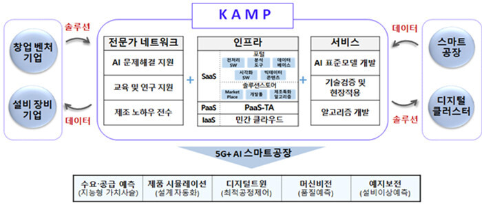 이 전략의 핵심기반이 되는 인공지능(AI) 중소벤처 제조플랫폼(KAMP)는 제조공정의 데이터를 수집-분석-활용하고 AI솔루션 개발을 지원하는 데이터 인프라와 AI전문가, 대학, 연구기관의 네트워크를 통합한 것으로 중소기업의 AI 활용을 지원하는 플랫폼 역할을 담당한다.