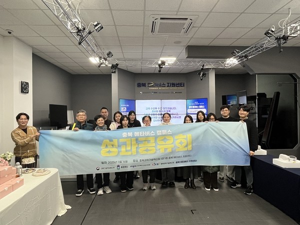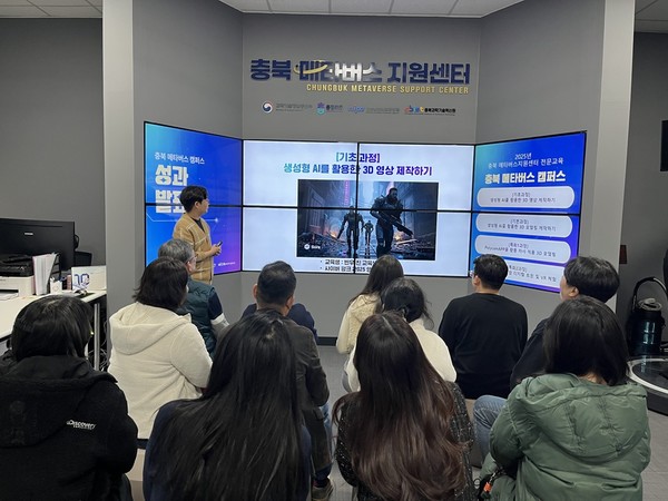 충북과학기술혁신원(원장 고근석, 이하 '충북과기원')의 충북 메타버스 지원센터 (이하 '충북 센터)는 지난 11월 16일, 충북 센터 테스트베드실에서 「2025 충북 메타버스 지원센터 전문교육 성과발표회」를 개최하여 교육생들 간 서로의 가상 융합기술 전문 인재 양성 프로그램의 결과물을 공유하는 자리를 가지며 교육을 성공적으로 마무리하였다고 밝혔다
