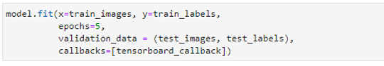 model.fit 에서 callbacks=[tesorboard_callback]) 을 정의한다.