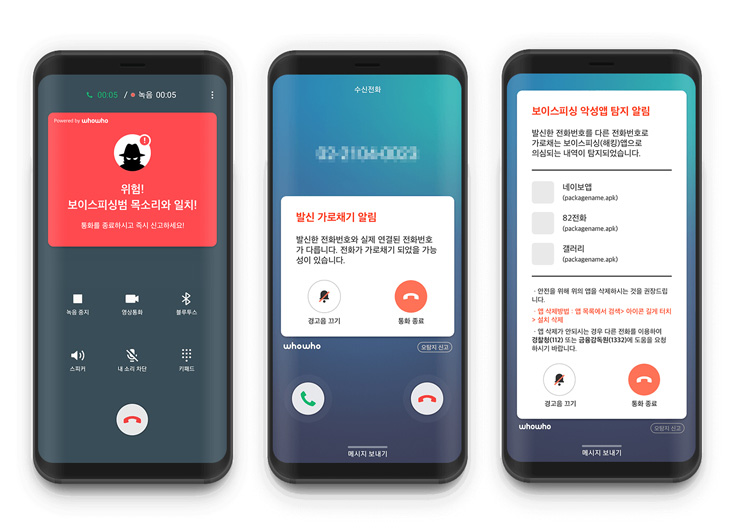 보이스피싱 탐지 솔루션은 성문(목소리) 분석과 전화 가로채기 탐지, 악성 앱(App) 설치 여부 탐지 및 스미싱 탐지 등의 기능으로 구성돼 피싱의심 전화나 문자가 오면 사용자에게 위험을 경고하는 예방 솔루션이다.