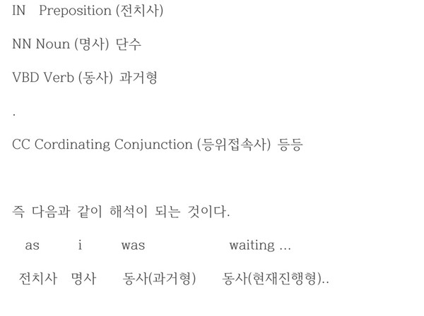 NLTK가 부여하는 POS 꼬리표의 예는 다음과 같다.