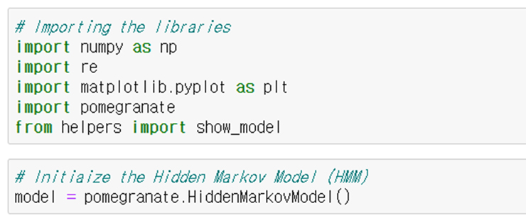 우선 아래와 같이 관련 라이브러리들을 import 한다. 파이썬의 확률모델 중 hidden markov model을 손쉽게 다룰 수 있는 pomegranate를 사용한다.