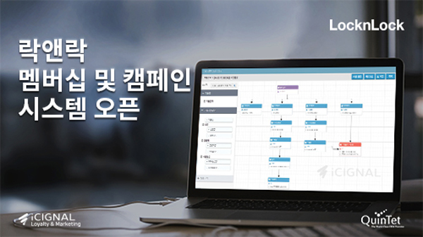 [IT비즈뉴스 최태우 기자] 퀸텟시스템즈가 21일 생활용품 기업 락앤락과 손잡고 자사의 아이시그널 로열티·마케팅 솔루션(iCIGNAL Loyalty & Marketing) 기반의 멤버십·캠페인 시스템을 오픈했다고 밝혔다.